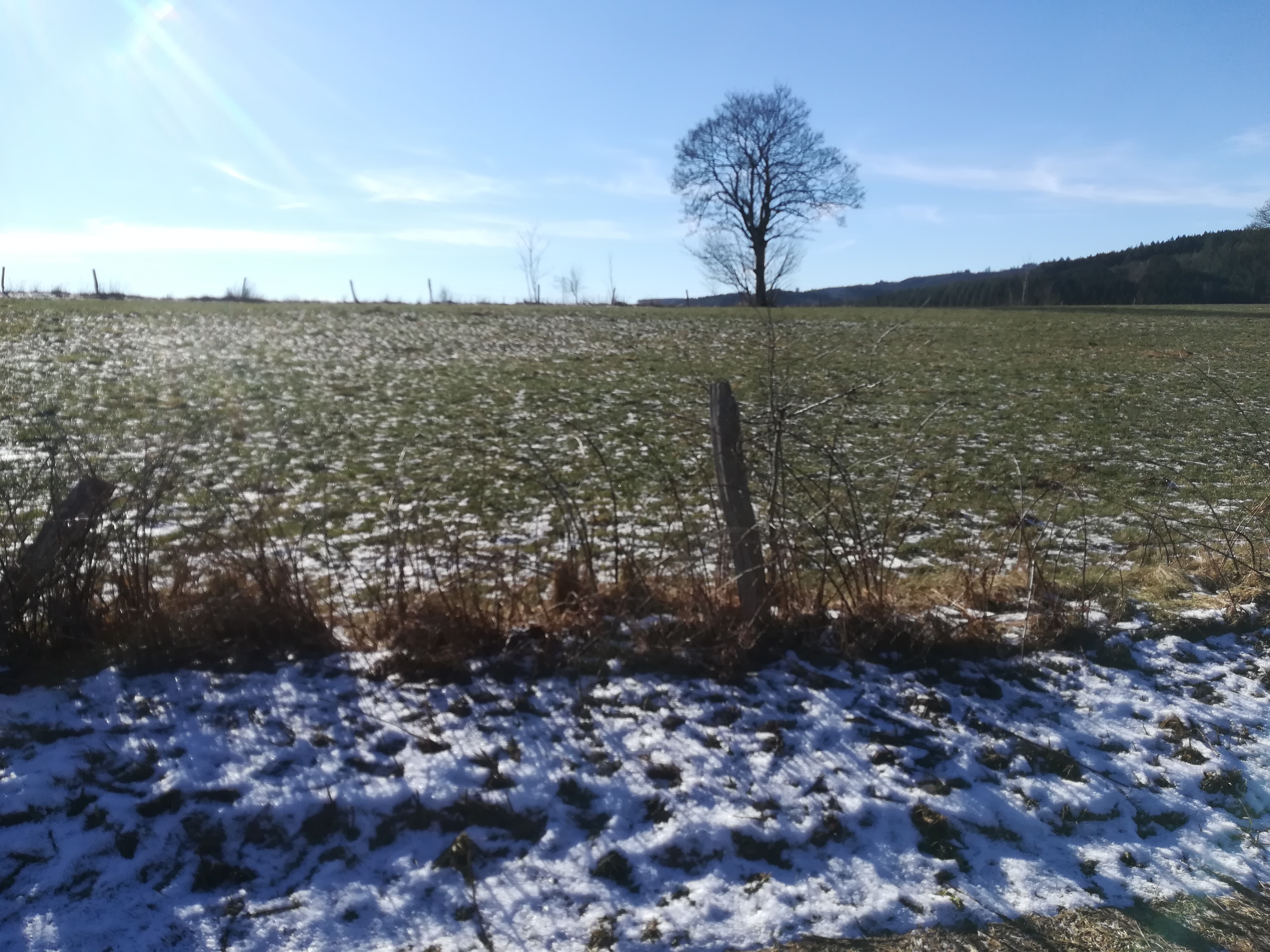 Pour cette nouvelle randonnée, nous prenons la direction de Vielsam en province de Liège. Nous arrivons avec le train L42 qui sinue dans la vallée de l’Amblève. Après un petit ravitaillement, nous nous élevons sur les hauteurs de Vielsalm par un petit chemin situé derrière le supermarché Spar. Celui-ci monte déjà bien mais ce n’est pas pour nous déplaire. Cela nous permet de nous réchauffer un peu car il fait -8 °C. Nous sommes depuis quelques jours sous un anti-cyclone continental nous amenant du froid polaire. Ce n’est pas courant dans nos contrées donc on en a profité.